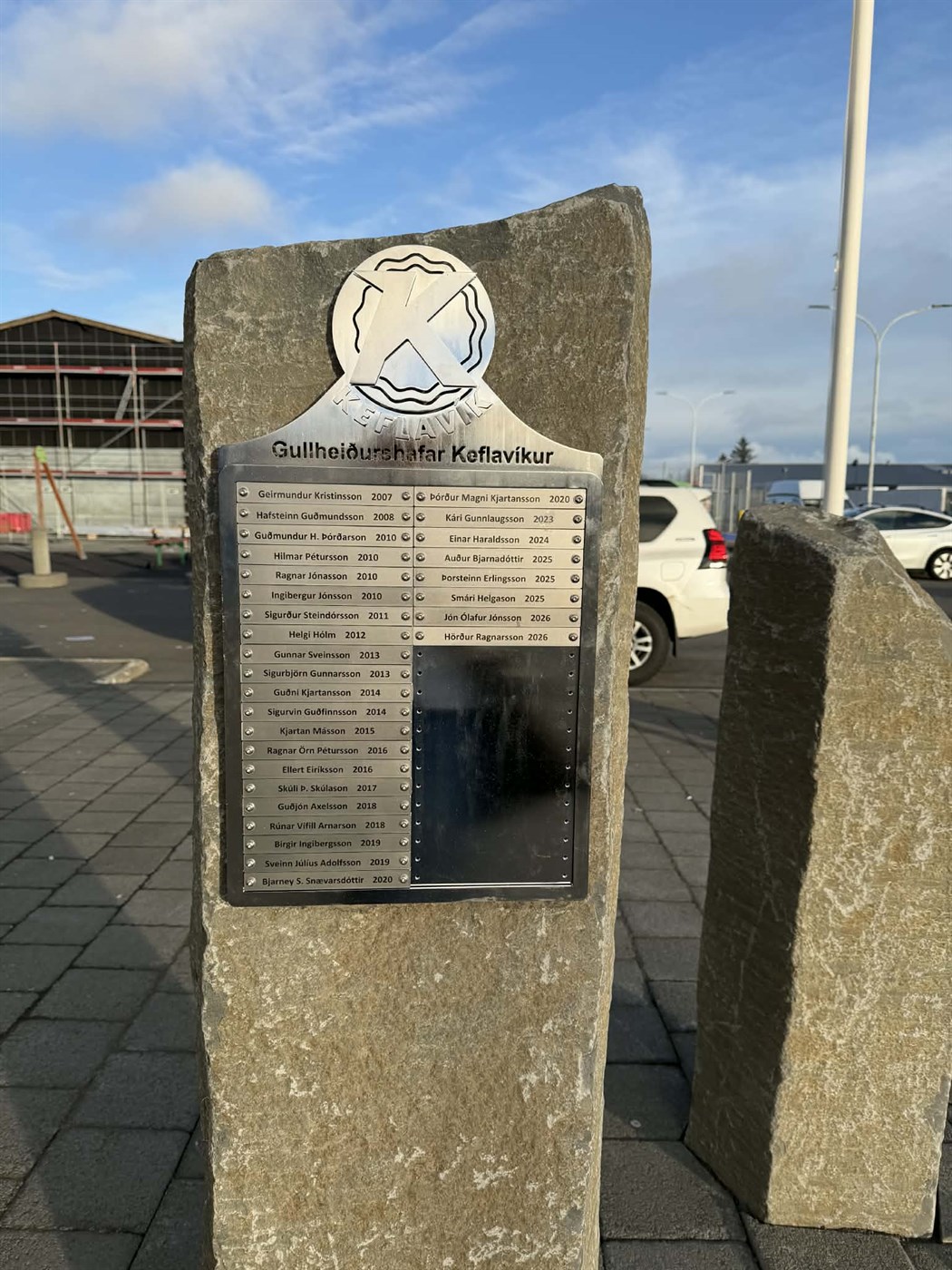 Að lokum afhjúpuðu þeir Hörður og Jón Ólafur minningarplatta um gullheiðurshafa Keflavíkur sem staðsettur er á stuðlabergi fyrir utan anddyri íþróttahússins.